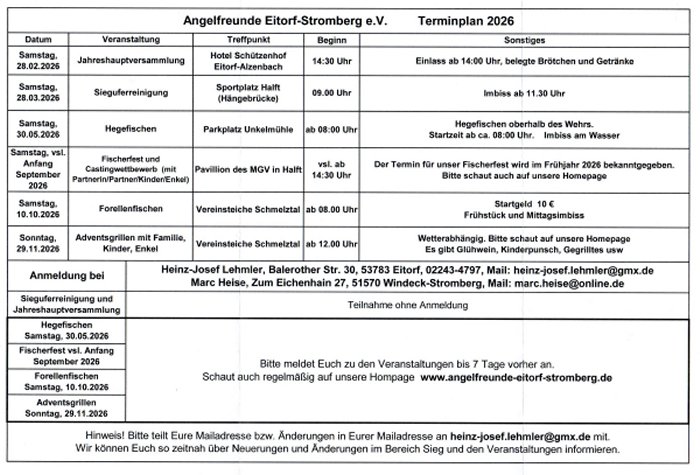 Jahreshaupt Versammlung der Angelfreunde Eitorf-Stromberg. e.V.